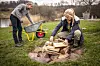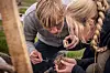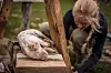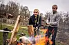 She teaches experimental archeology to Jæger and Johansen and is with them today in Sagnlandet Lejre to observe their bonfire experiment.