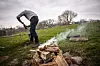 SAGNLANDET LEJRE, Denmark -- The burning piglet doesn’t smell as expected. It smells more like bonfire and this is slightly disappointing.