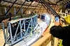Skipet ble løftet i en stor vibrasjonsbeskyttet kasse. En kranbane i taket som er støttet opp av enorme stålrigger, fraktet skipet.