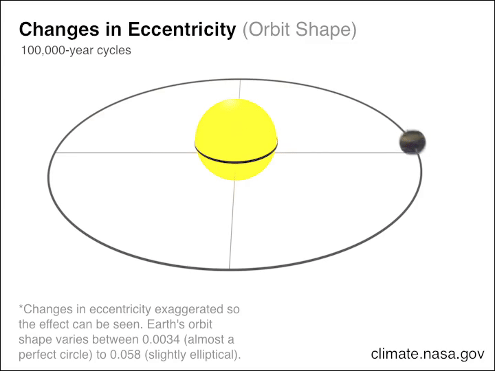 Dette er endringer i jordens bane, fra sirkulær til elliptisk, samt endring i jordens helning og vingling, noe som påvirker solinnstrålingen.