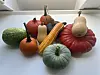 Avlange Yellow Marrow og pæreformede Butternut skaper variasjon i et arrangement. De runde, kompakte typene som Sweet Mama, Uchiki Kuri og små Halloween-gresskar gir ekstra fargekontrast, enten samlet eller hver for seg.